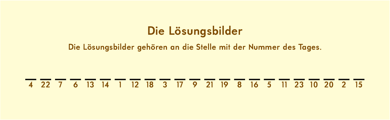 Einfach das Raster für die Lösungsbilder ausdrucken und jeden Tag die Bilder eintragen.